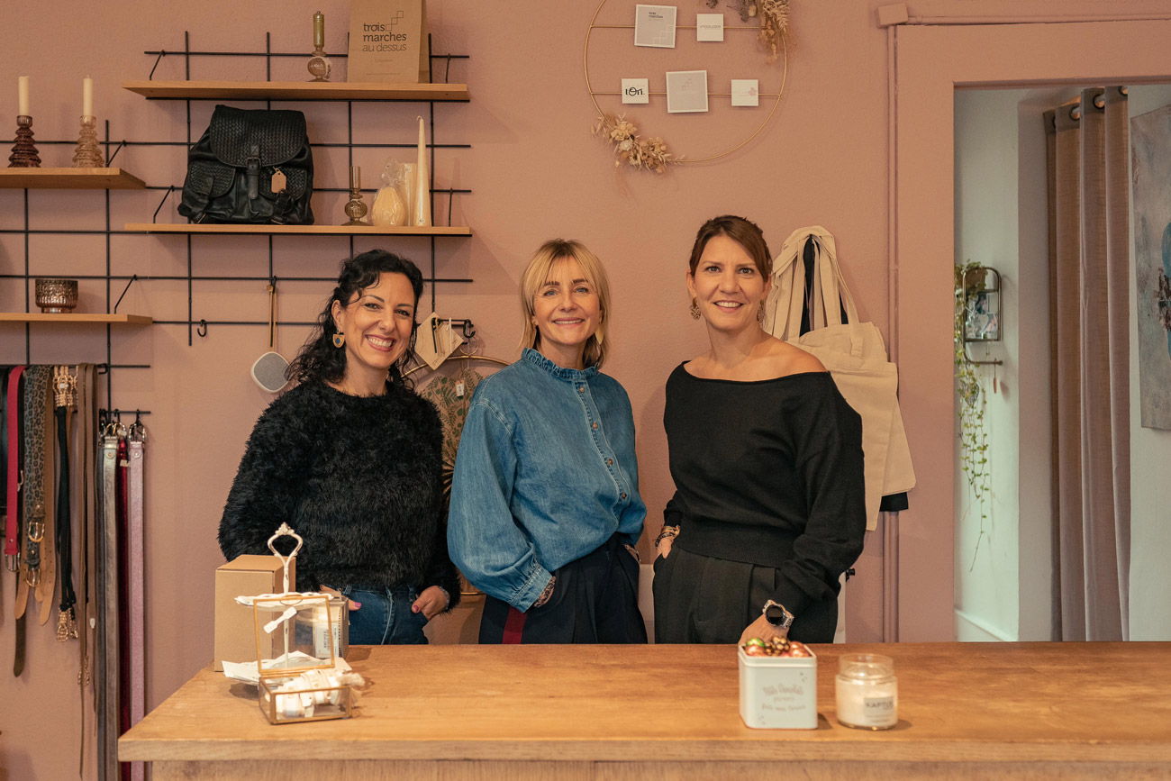 Trois Marches au Dessus c’est la rencontre de trois mondes, la mode, la déco et les soins esthétiques, l’intersection de trois univers, la complicité de Giusi, Virginie et Sylvia.